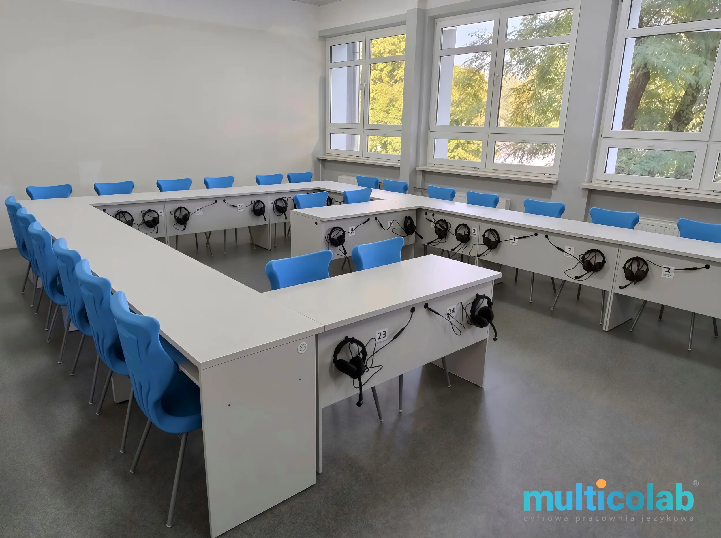 Multicolab® to nowoczesny i intuicyjny system wspierający naukę języków obcych, który eliminuje potrzebę stosowania tradycyjnych pulpitów sterujących. Dzięki niemu nauczyciele mogą w pełni wykorzystać potencjał technologii, prowadząc zajęcia w sposób interaktywny i dopasowany do potrzeb uczniów.